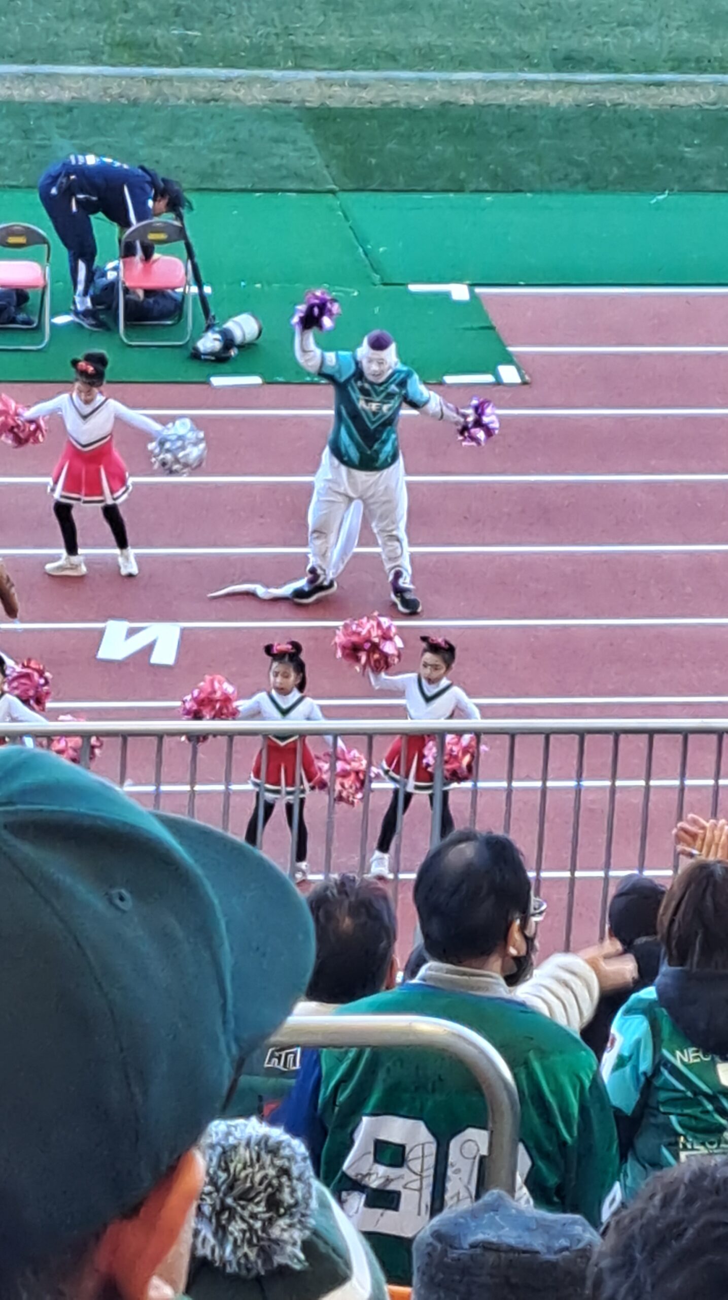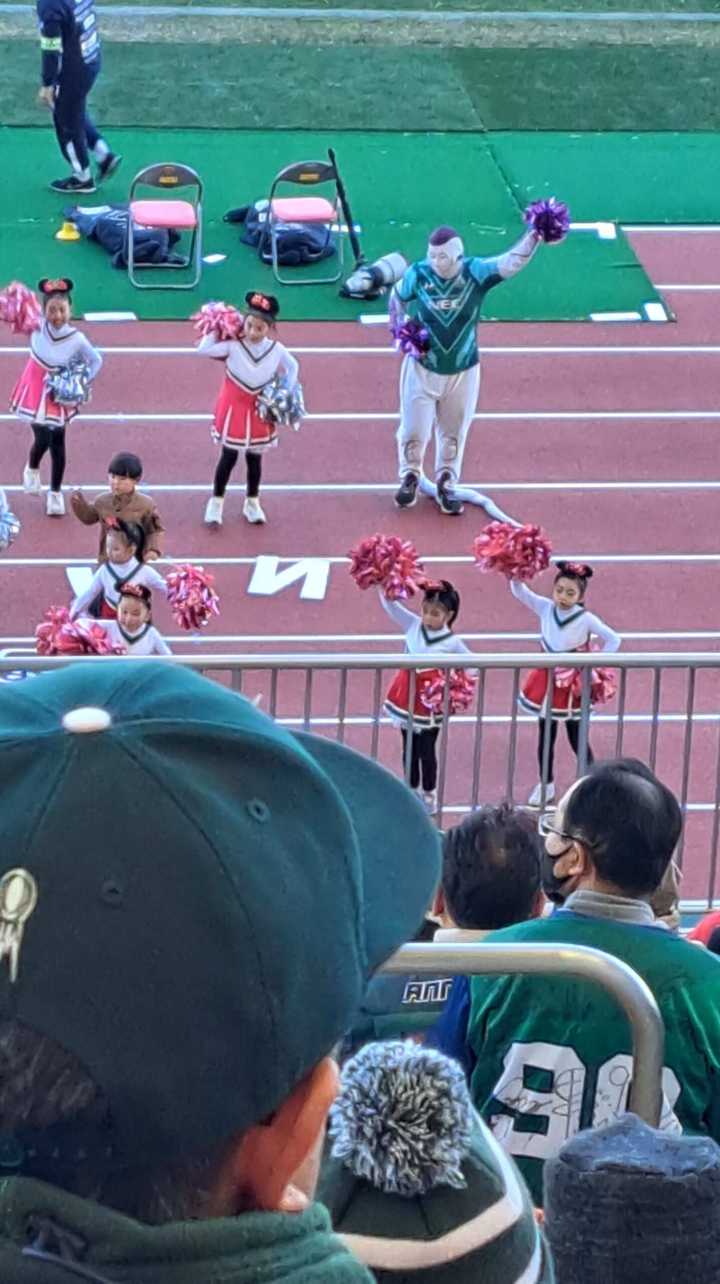 ハーフタイムには子供たちのチアガールが登場し、元気いっぱいのパフォーマンスに癒されました。