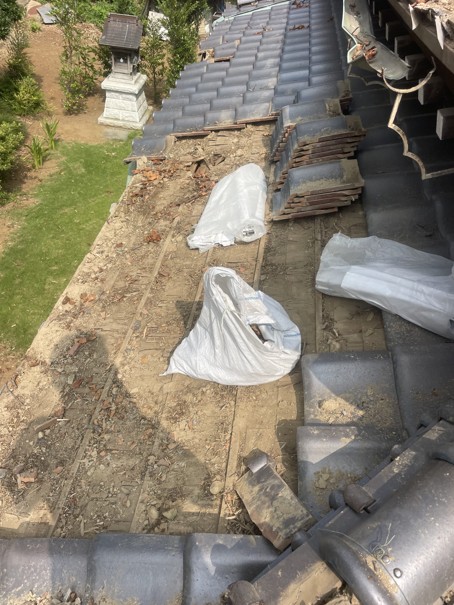 - 割れた瓦の片付け