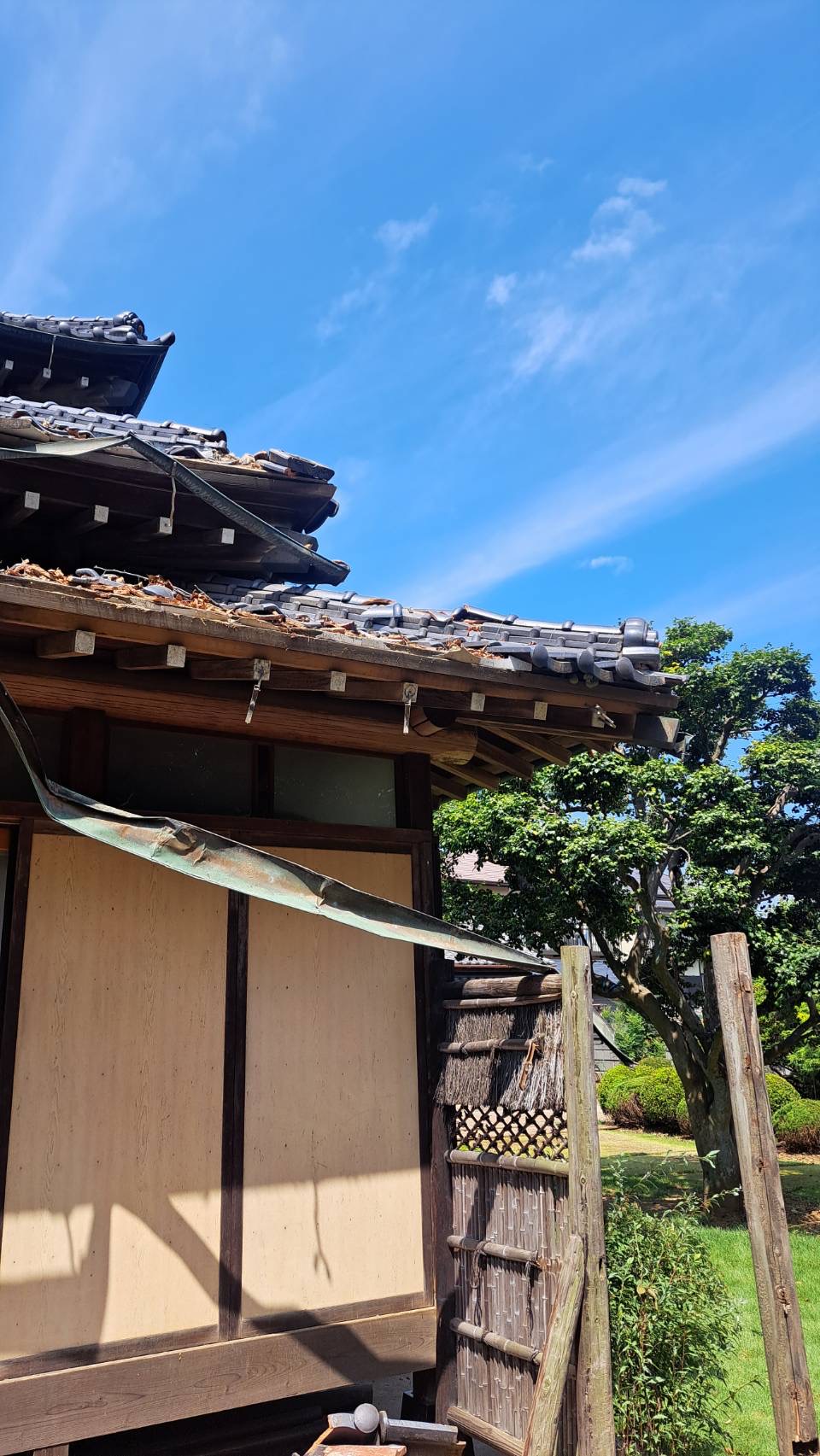 先日、突然の強い風と雨により、庭の木が母屋に倒れてくるという被害が発生しました。
