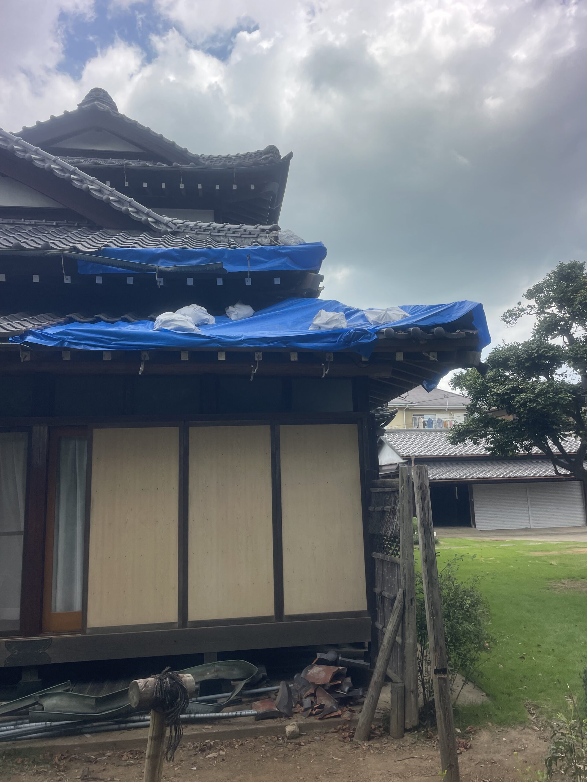 - 応急処置としてのブルーシート養生