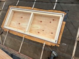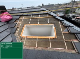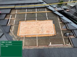 屋根の野地側の開口部にも合板ベニヤを納め、その上からゴムアスファルトルーフィングを張ることで防水処理をいたします。