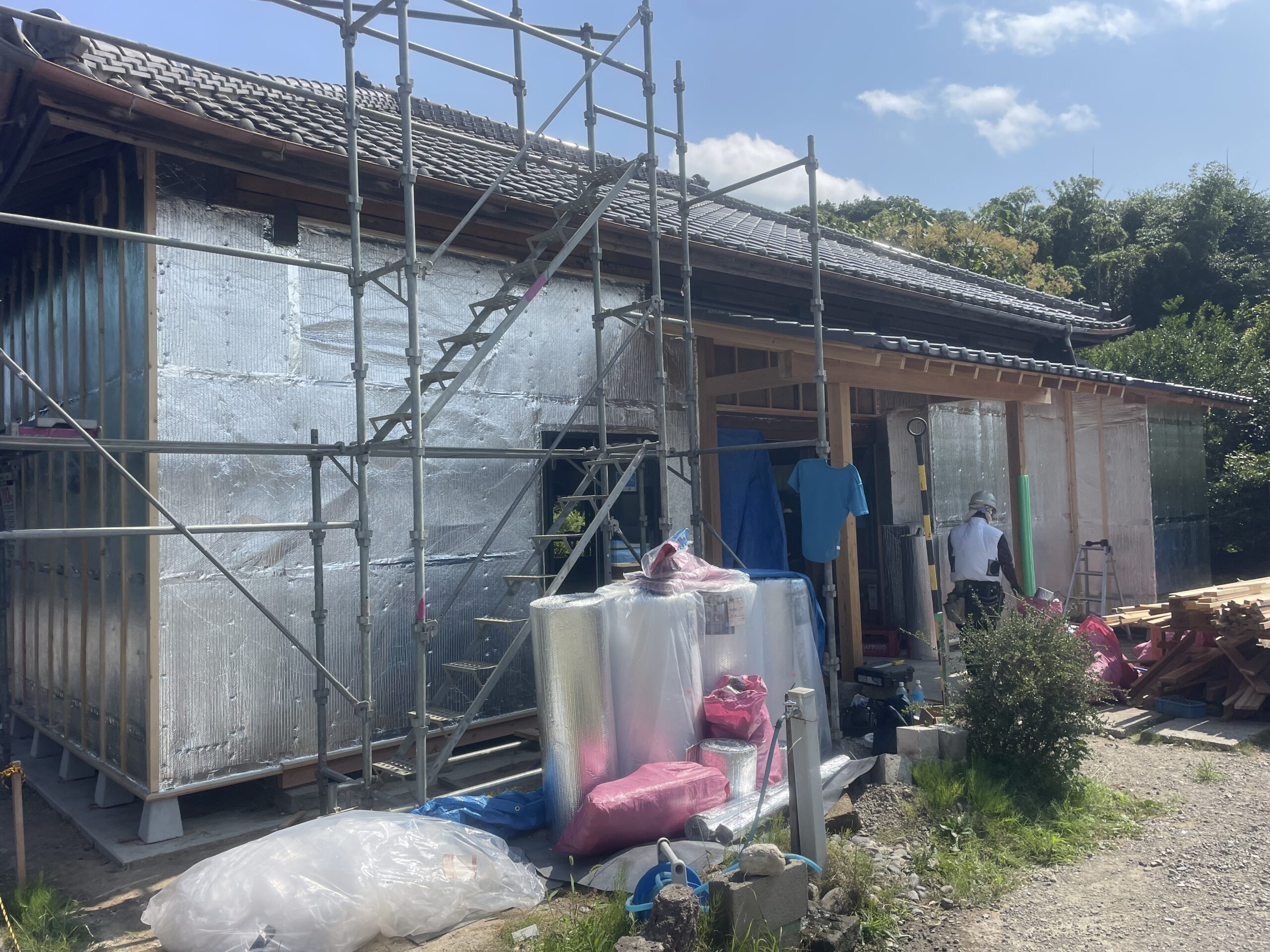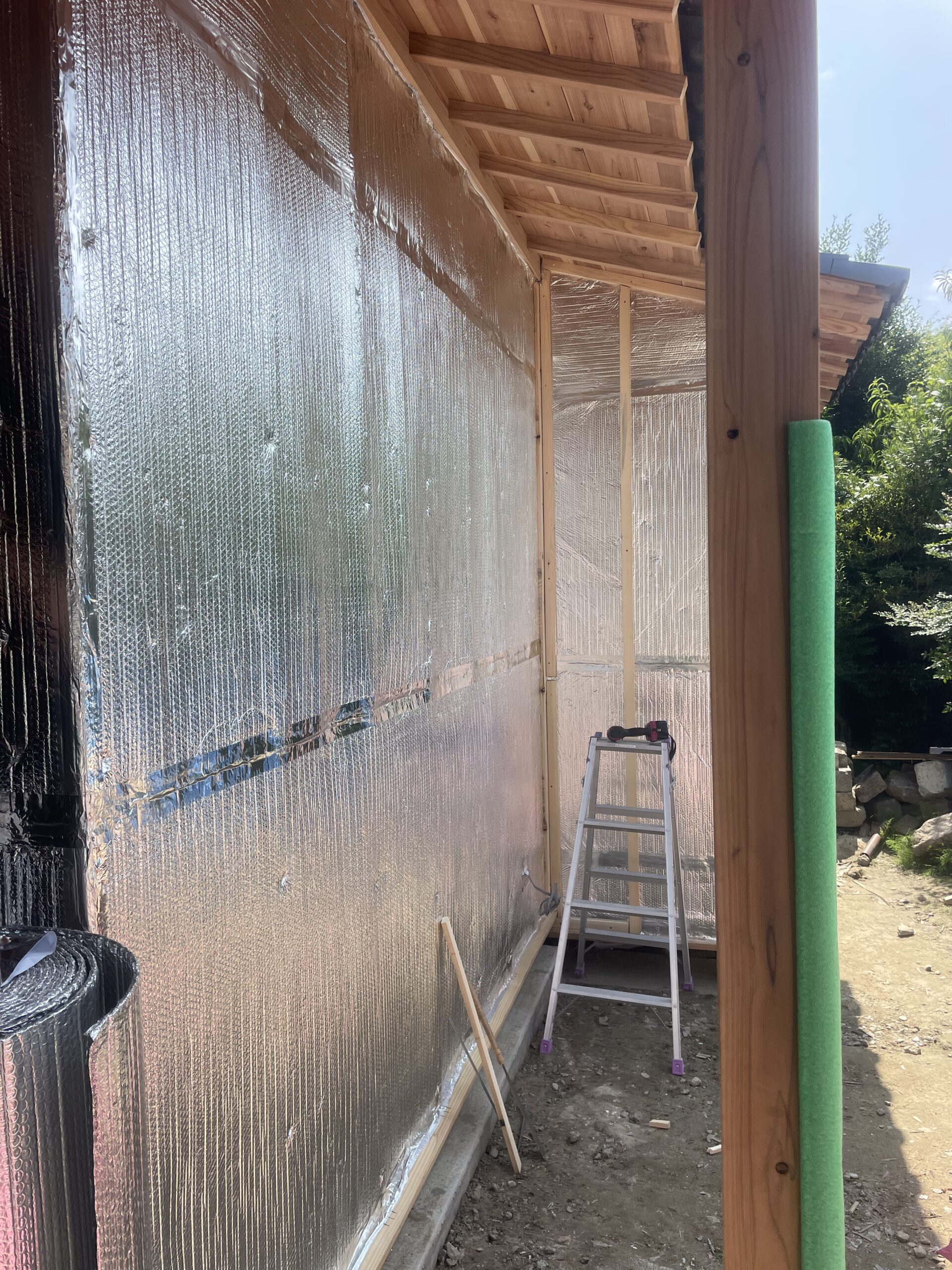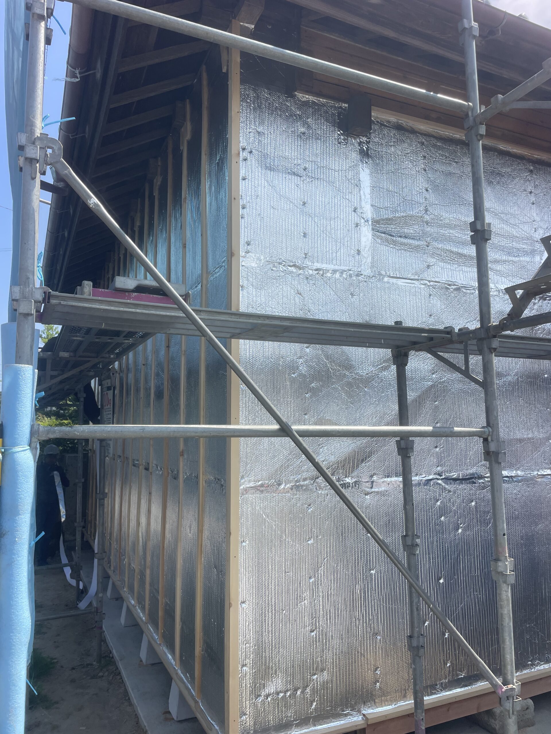 スケルトン状態からスタートし、**床下に遮熱シート「リフレクティックス」**をしっかり施工したところまでをご報告しておりましたが、このたび、外壁へのリフレクティックス施工も完了いたしました!