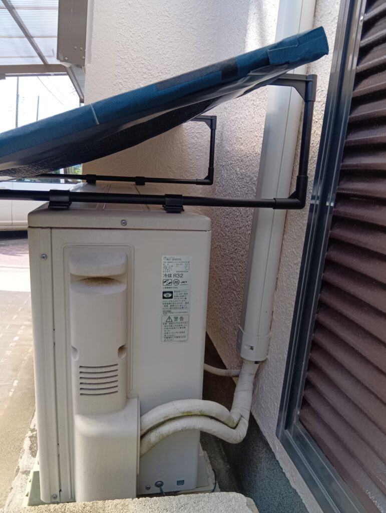 猛暑で室外機が熱くなり冷房効率低下、電気代高騰、最悪の場合は故障に繋がるケースもあるとのことです。