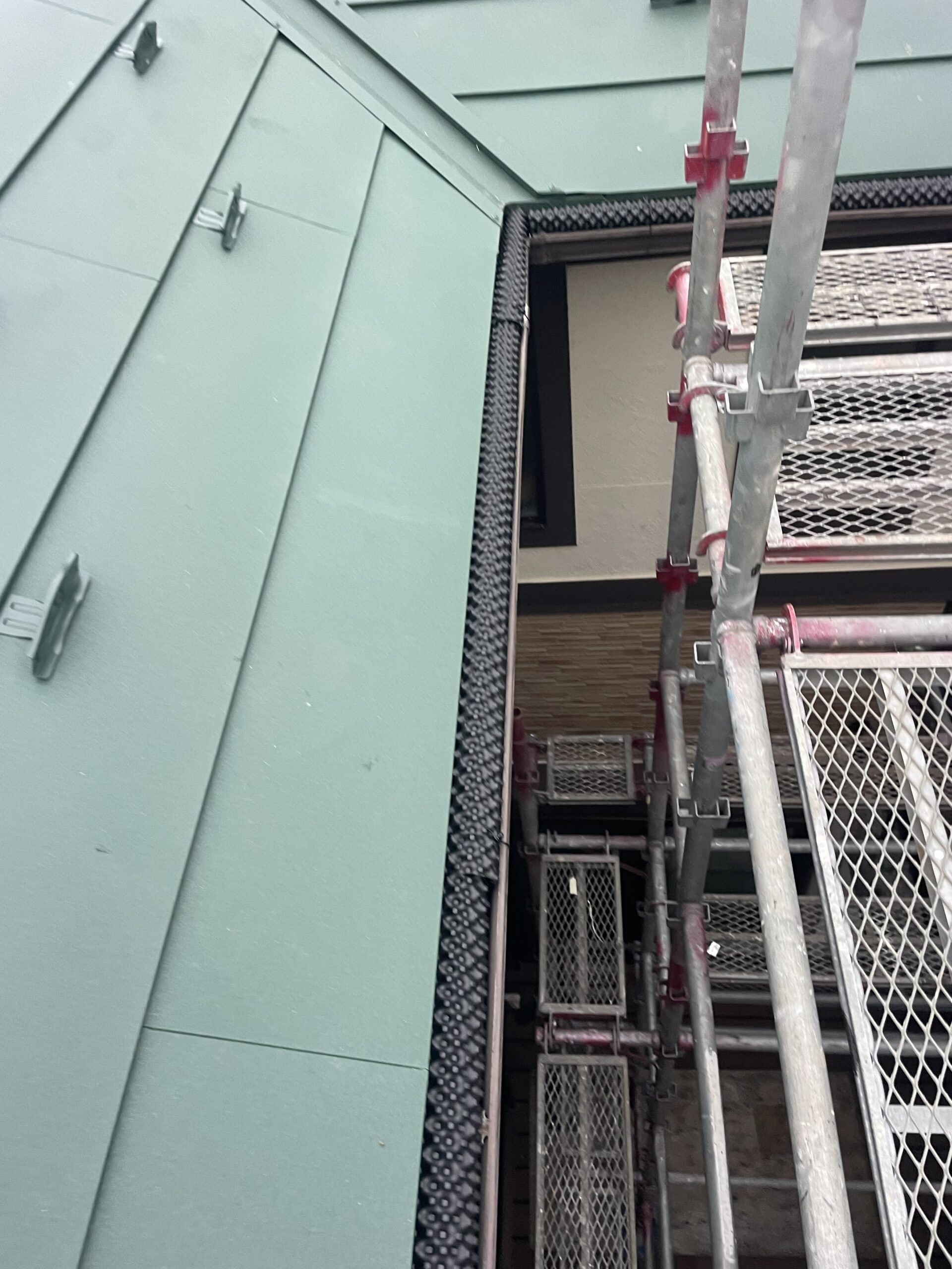先日、お客様宅の雨樋に落ち葉避けネットを取り付けさせていただきました。