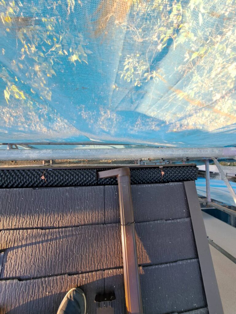雨樋の両端や排樋箇所もシート状なので切り込み加工で隙間なく取り付けられます。
