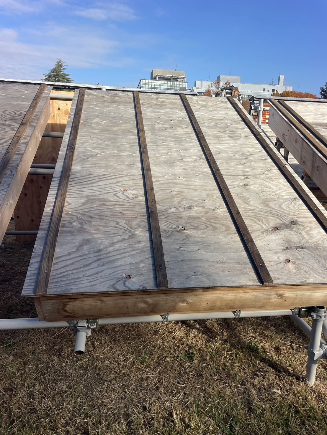 先日、社長をはじめ、コトブキの仲間たち、大工さんや職人さんたちと一緒に、屋根下地通気工法の実験架台づくりを行いました。普段の施工とは少し違い、技術検証のための“実験”ということで、学びも多い一日になりました。