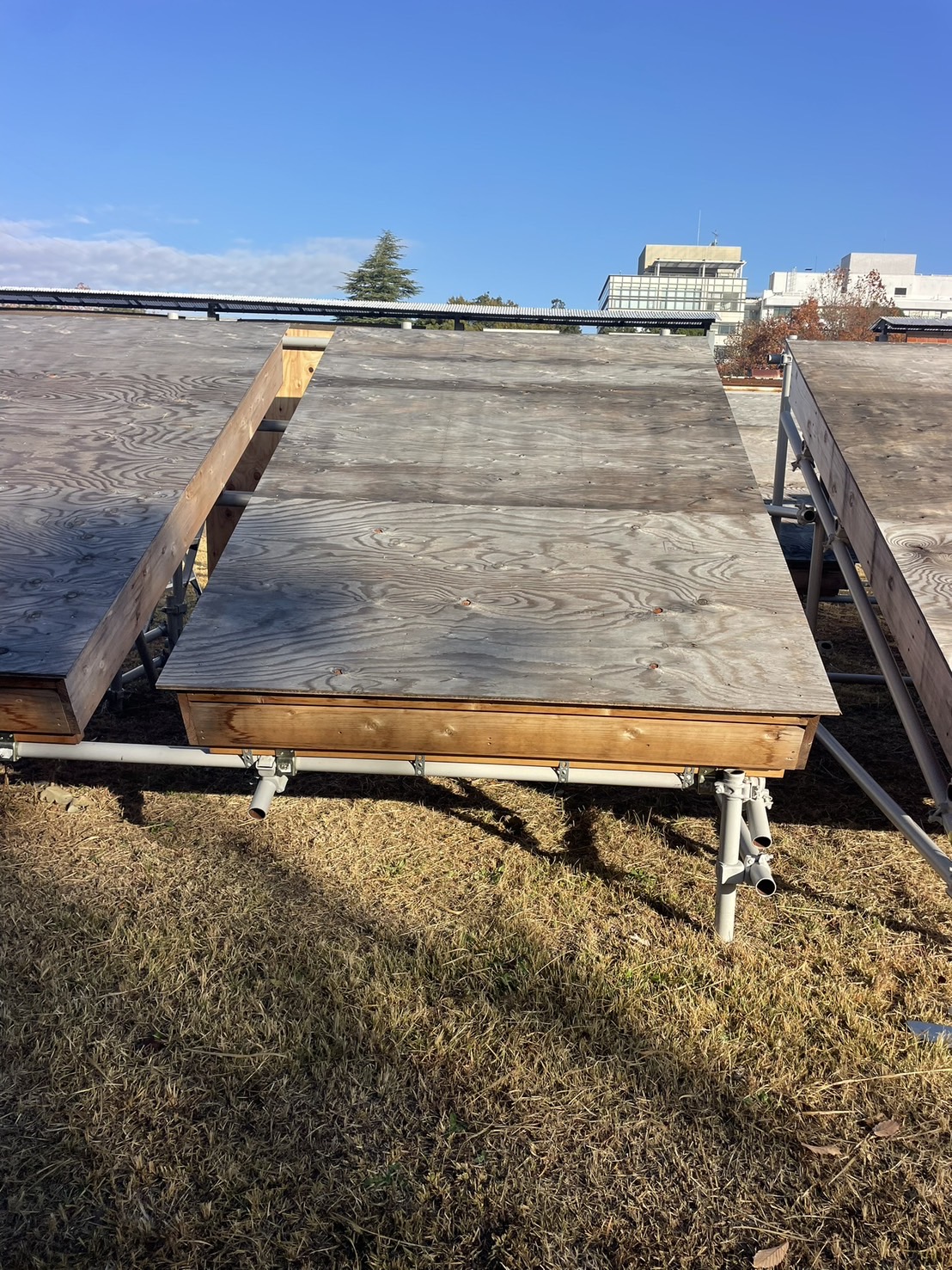 今回制作した架台はこのあと数年間自然環境に晒し、経過を観察する実験を行います。